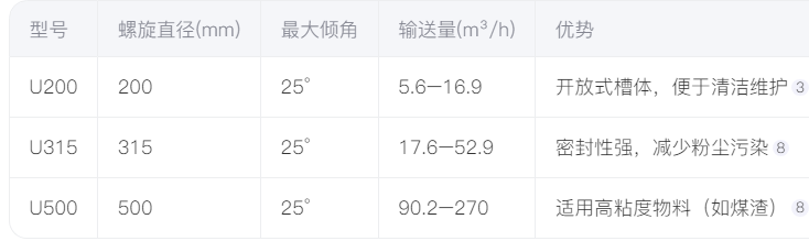 以上參數均為標準工況值,實際需根據物料密度、濕度、輸送距離調整。螺旋輸送機安裝限制?:空間狹窄用U型槽(占地小);需垂直輸送時選專用管式機型。